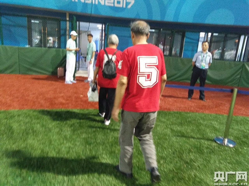 • 原天津棒球隊隊員、第三屆全運會冠軍王銘從醫(yī)院趕來觀戰(zhàn)助威。
