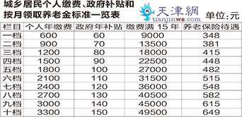 參保居民繳費滿15年的,年滿60周歲時,按照一檔繳費每月可領348元、二檔381元、三檔415元、四檔448元、五檔482元、六檔515元、七檔548元、八檔582元、九檔615元、十檔649元的養(yǎng)老保險待遇。