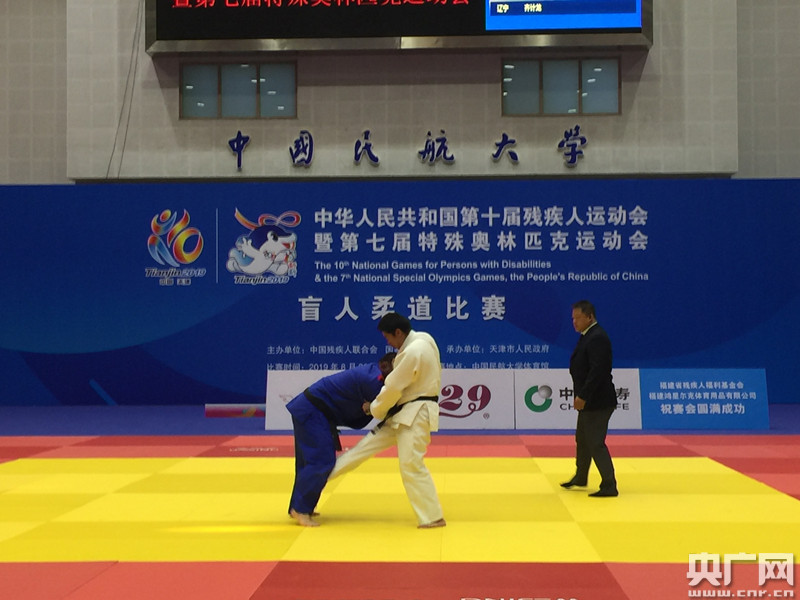 央廣網(wǎng)天津8月31日消息(記者褚夫晴)藍色的地板,紅黃相間的地毯,聲浪滾滾的助威聲。8月29日,在中國民航大學體育館的賽場中央,經(jīng)歷了4分05秒的加時后,江西隊的馮斌與遼寧隊的齊計龍結(jié)束了全國第十屆殘運會暨第七屆特奧會盲人柔道男子81公斤級以上無差別級銅牌賽的爭奪。
