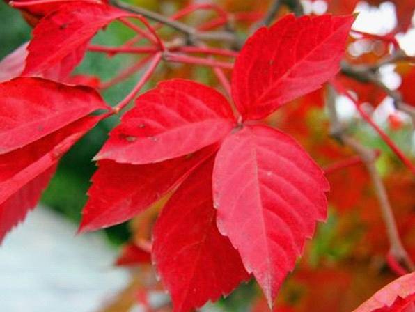 五葉地錦,又名美國地錦,葡萄科爬山虎屬。落葉大藤本,具分枝卷須,卷須頂端有吸盤。十月上旬葉色逐漸變紅,多用于園林墻壁及公路兩旁山巖裸露處綠化,也是優(yōu)良的觀紅葉樹種。