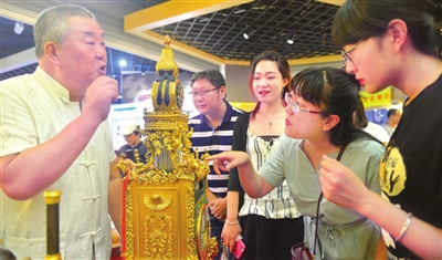 本次活動(dòng)中,18家南開區(qū)非遺代表性項(xiàng)目以及5家旅游文化企業(yè)結(jié)合自身特點(diǎn),通過義賣、義演、捐贈(zèng)等形式參與扶貧協(xié)作,同時(shí)也展現(xiàn)了非遺的傳承精神。(記者 胡凌云 通訊員 吳樹群 攝)