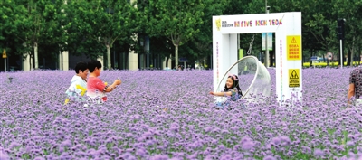 天津泰達(dá)城市廣場(chǎng)兩萬(wàn)多平方米的大花園升級(jí)后,從空中俯瞰可見(jiàn)“泰!眻D案,中間通道還增設(shè)了精巧的花式秋千,讓游客流連忘返。 本報(bào)記者 王濤 攝