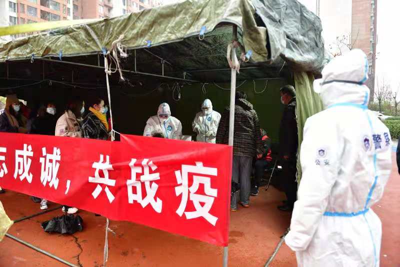 天津市濱海新區(qū)公安局公安干警引導居民有序排隊篩查(央廣網發(fā) 濱海新區(qū)公安局供圖)