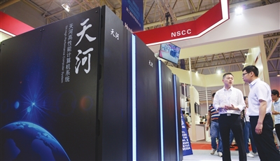 第二屆世界智能大會(huì)在天津梅江會(huì)展中心開(kāi)幕。圖為天河三號(hào)高性能計(jì)算機(jī)系統(tǒng)。記者 張磊 攝