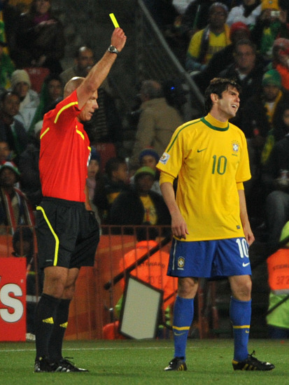 卡卡結(jié)束禁賽重返鄧加的首發(fā)陣容,不過巴西10號(hào)的“清白之身”卻只保持了30分鐘,開場(chǎng)正好半個(gè)小時(shí),智利球員比達(dá)爾沿左路帶球突破,卡卡將其絆倒,這并不是一個(gè)嚴(yán)重的犯規(guī),裁判韋伯一開始也沒有出牌的意思,但在安穩(wěn)了雙方球員之后,英國(guó)人還是向卡卡補(bǔ)發(fā)了一張黃牌。