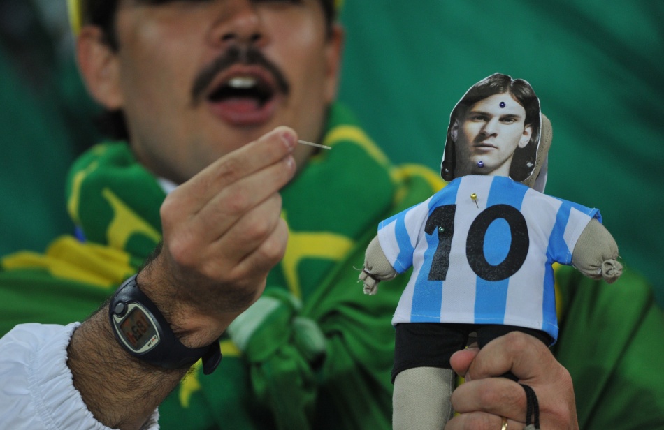 阿根廷VS墨西哥球迷造勢 球迷“扎梅西小人”