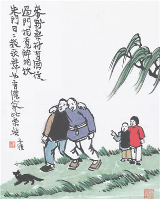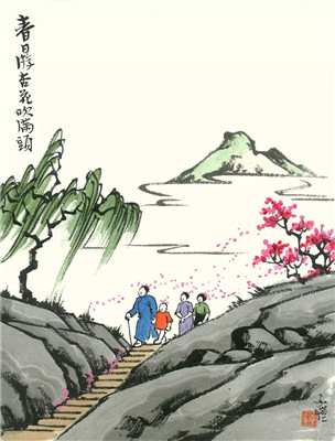 原來這完全是偶然的:昔年我住在白馬湖上,看見人們在湖邊種柳,我向他們討了一小株,種在寓屋的墻角里。因此給這屋取名為“小楊柳屋”,因此常取見慣的楊柳為畫材,因此就有人說我喜歡楊柳,因此我自己似覺與楊柳有緣。假如當(dāng)時(shí)人們在湖邊種荊棘,也許我會(huì)給屋取名為“小荊棘屋”,而專畫荊棘,成為與荊棘有緣,亦未可知。天下事往往如此。