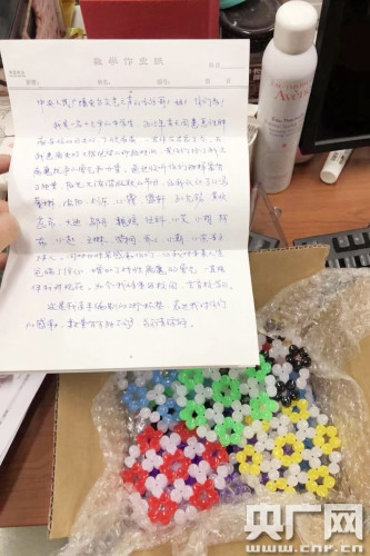 寫信的孩子叫司濟瑋,根據(jù)信中提及的主持人名字,他收聽廣播至少已有5年的時間。隨信而來的還有一個小包裹,里面花花綠綠的,是他親手編制的28個杯墊。