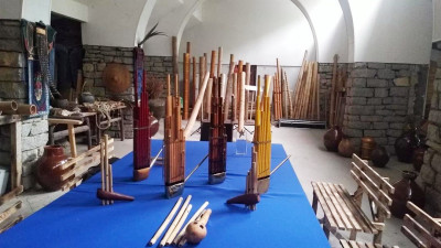 多年來,楊勝文大膽創(chuàng)新,就地取材自制各種民族樂器。有靈感來自民間吹火筒的樂器“雕”,樂器名來源于苗語的發(fā)音是DIONG;家用的缸子有特殊的共鳴,于是用牛皮蒙住缸口,自造了“缸子鼓”;苗寨儲存糧食的竹筒,隨意搖擺,即能聽到一種悅耳的聲音,于是,類似于沙錘的“五谷棒”誕生。不能透露太多,要不節(jié)目中的悅耳音響就失去猜想的意義啦…