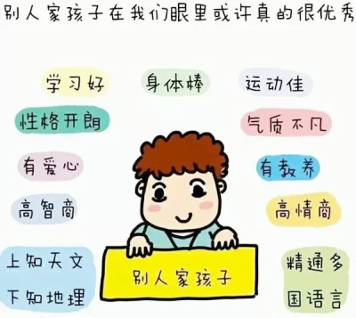所以這就告訴我們一個道理,你不僅僅要跟父母認識的那個最優(yōu)秀的孩子比,其實還要跟他們認識所有孩子的所有優(yōu)點比。因為父母會根據(jù)不同教育需求,然后自己口中的別人家的孩子經(jīng)常換人。