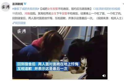 結(jié)果到了晚上都沒忍住,倆人吃飽了回寢室一頓互相跪拜道歉,被同寢其他同學(xué)拍下來走紅網(wǎng)絡(luò)。