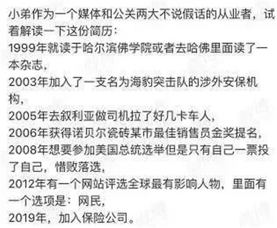 后來曹立接受記者采訪時表示,這個簡歷只是個會議現場的暖場玩笑,作為新人剛加入保險公司可能想更快地讓大家認識他,這效果真不錯,現在全國人民都知道有這么個人了。