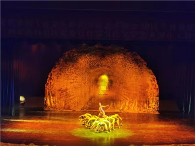 此次演出共有“坭之興”、“火之熎”、“陶之魂”三個藝術章節(jié)。將廣西壯族文化與中華太極文化相結合,將現(xiàn)代舞與民族特色相融合,以男女舞者的陰陽象征坭興陶之紅白泥,再現(xiàn)坭興陶的“窯變”;以“老藝人”的“摟、揮、轆、挑、榣、光”展示制作坭興陶的工匠精神,演繹了千年坭興陶之制作與“窯變”技藝。不僅如此,在舞蹈創(chuàng)作中還融入了廣西花山壁畫、壯錦布藝、欽州跳領頭等非物質(zhì)文化元素,為非物質(zhì)文化遺產(chǎn)傳承保護貢獻了自身力量。