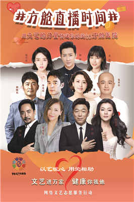 由周迅、陳坤、黃渤、沈騰、林永健、張杰、佟麗婭、陳曉、楊洋、周冬雨、平安、鄧萃雯、李光潔、陳赫、李丹陽、劉勁、康輝、張凱麗、陳思思、杜江、霍思燕、韓庚、顏丹晨、包貝爾、馬天宇、胡靜、于朦朧、張蕾、黃齡、金晨、孫藝洲等40余位影視演員、藝術(shù)家組成的活動(dòng)宣傳推廣團(tuán)時(shí)刻在線傳遞著活動(dòng)進(jìn)展和“文藝進(jìn)萬家健康你我他”的志愿服務(wù)理念,為抗擊疫情加油鼓勁。