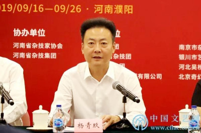 楊青玖表示:第四屆中國(guó)雜技藝術(shù)節(jié)在濮陽(yáng)舉辦,是對(duì)濮陽(yáng)雜技文化事業(yè)發(fā)展的肯定和支持,更是對(duì)濮陽(yáng)雜技產(chǎn)業(yè)創(chuàng)新發(fā)展的期望和厚愛。在中國(guó)文聯(lián)、中國(guó)雜技家協(xié)會(huì)、河南省委宣傳部的精心指導(dǎo)下,在河南省文聯(lián)、河南省文化和旅游廳等部門的關(guān)心支持下,濮陽(yáng)市把辦好本屆雜技藝術(shù)節(jié)作為傳承發(fā)展雜技藝術(shù)、提升融合發(fā)展水平、增強(qiáng)城市影響力的重要舉措,精心組織、周密部署,扎實(shí)做好各項(xiàng)籌備工作,努力辦出濮陽(yáng)特色、中原風(fēng)范、國(guó)家水準(zhǔn)。