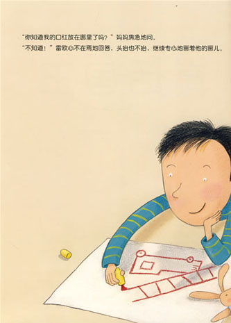 哦!原來媽媽要找的口紅就是雷歐的畫筆,