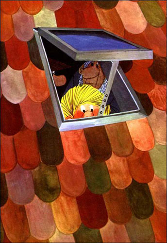 “現(xiàn)在三個丹尼斯走進玫瑰叢里去了!蹦棠陶f,“快,趁他們不在,我們趕緊幫他們織襪子吧!”