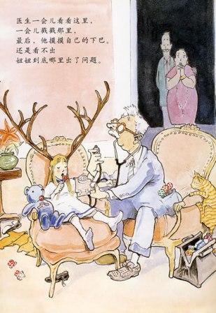 更神奇的是——星期四的早晨,妞妞長出一對大鹿角!哦,那可不是短短粗粗的牛角,而是長長美美、充滿藝術(shù)感的鹿角!那么,妞妞驚慌失措嗎?不!只不過她的這一天過得的確有點不尋常。妞妞一樣穿衣,只是費(fèi)了點功夫;一樣走出房間,只是要動點腦筋;一樣下樓吃早餐,只能從扶手上溜下去……妞妞沒覺得什么,可是傳來的是妞妞媽媽的尖叫,而且媽媽昏倒了!