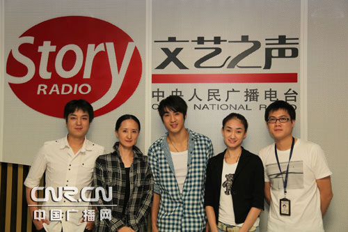 (從左至右)主持人阿杰、中央芭蕾舞團(tuán)的團(tuán)長馮英、主演黃震、主演孟寧寧、編輯李煒填