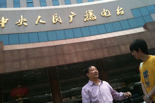 方毓仁先生和編輯呂煒在中央臺(tái)大樓前交流