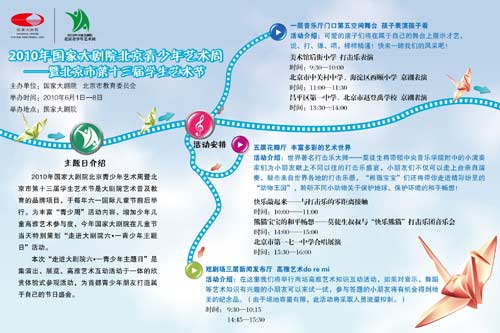 主題日由合唱藝術(shù)展演、第五空間藝術(shù)交流、藝術(shù)互動游戲、展覽4大部分組成。孩子們在這里不僅可以認識了解藝術(shù),還可與特邀的藝術(shù)家合作簡單易學的小作品,并參與有獎知識問答獲得禮品。屆時,大劇院的藝術(shù)空間將充滿歌聲、樂聲、笑聲,成為匯聚歡樂的海洋。值得一提的是,國家大劇院、北京市教育委員會向各區(qū)縣中小學、打工子弟學校、國際學校等單位免費發(fā)放“主題日參觀票”4000張,孩子們可憑票參加當天的精彩活動。陪同前來大劇院的家長,還可憑“主題日參觀票”購買兩張半價參觀票(20元/張)。