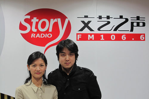 導(dǎo)演敏卉(左)和主持人阿杰(右)在直播間留影(記者呂煒 攝)