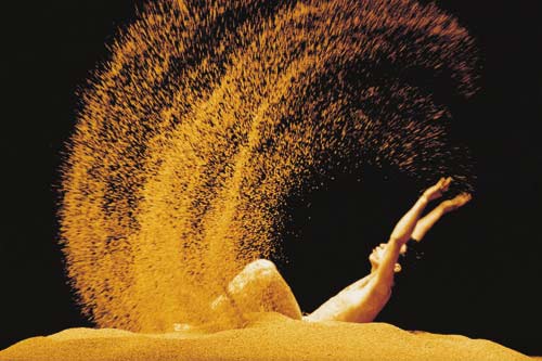 《流浪者之歌》三噸半的黃金稻米,是舞作中最動人的風景。林懷民說,我要整個舞臺的黃金稻米。從選米、篩米、洗米、染色、烘曬、腌割、熏蒸繁復(fù)的加工,才有“黃金之舞”的詩意畫面。米是圣河、是山、是求道者的苦行鞭笞,是清泉細流,是舞評所說的“生命之源”。