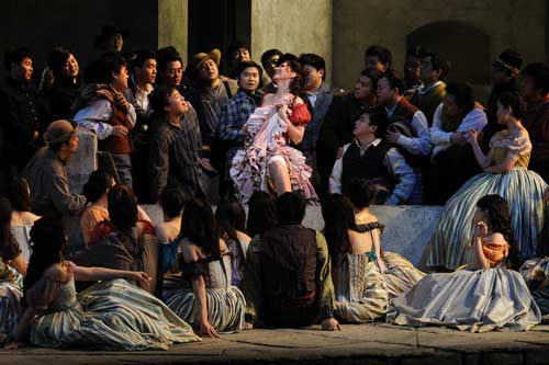 中廣網(wǎng)北京4月11日消息(記者 呂煒)美國(guó)紐約大都會(huì)“金童玉女”引燃全場(chǎng)熱情。4月10日,卡門的扮演者維克托麗拉·維津和堂·何塞的布蘭登·喬瓦諾維奇,成為演出的大亮點(diǎn)。兩人曾共同出演過大都會(huì)歌劇院的《卡門》,當(dāng)時(shí)他們以登對(duì)外形、默契表演被評(píng)為“金童玉女”。在近日中國(guó)國(guó)家大劇院的演出中,維津和喬瓦諾維奇繼續(xù)延續(xù)之前的默契,無(wú)論是第一幕情意綿綿的對(duì)唱,還是最后一幕充滿仇恨的對(duì)手戲,顯露二人豐富的合作經(jīng)驗(yàn),他們出色的表演和唱功多次引燃全場(chǎng)。