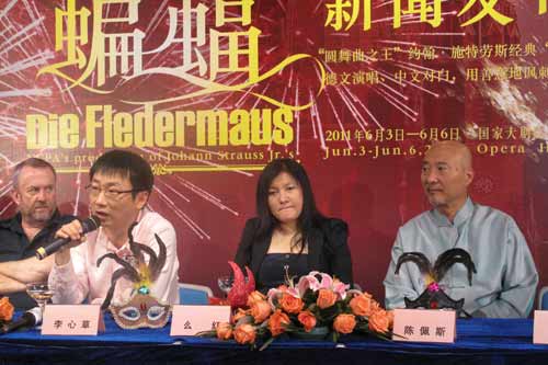 中廣網(wǎng)北京5月4日消息(記者 呂煒)5月3日,國家大劇院一場別開生面的媒體見面會(huì)在新聞發(fā)布廳舉行。伴隨著維也納圓舞曲的優(yōu)美旋律,十二位頭戴面具、手持香檳的嘉賓,跳著輕盈的華爾茲登場,展示了“圓舞曲之王”約翰·施特勞斯輕歌劇《蝙蝠》中熱鬧的宴會(huì)場景。雖然距離6月3日國家大劇院版《蝙蝠》首演還有一個(gè)月,但包括孫礫、么紅等主要演員已提前“入戲”排練。指揮李心草、導(dǎo)演史蒂芬·勞利斯、主演么紅等解讀了大劇院版《蝙蝠》獨(dú)特之處,備受關(guān)注的喜劇演員陳佩斯也借《蝙蝠》暢談了對(duì)歌劇表演的看法。