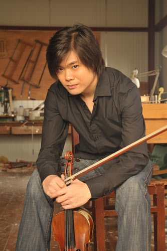 尼古拉·齊奈德和小提琴合影