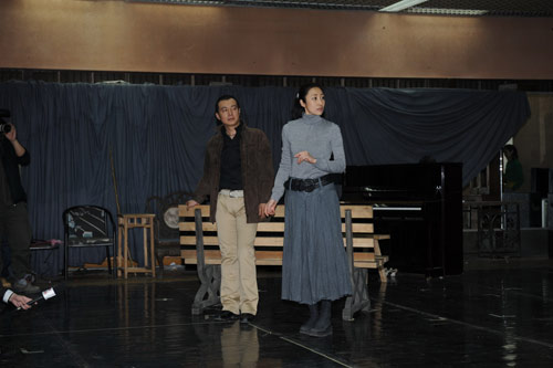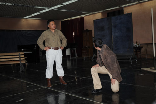演員張秋歌(左)和于洋(右)在對戲中(國話 供圖)
