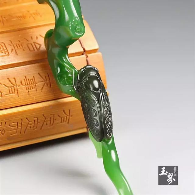 ▲碧玉巧雕掛件-聽(tīng)蟬