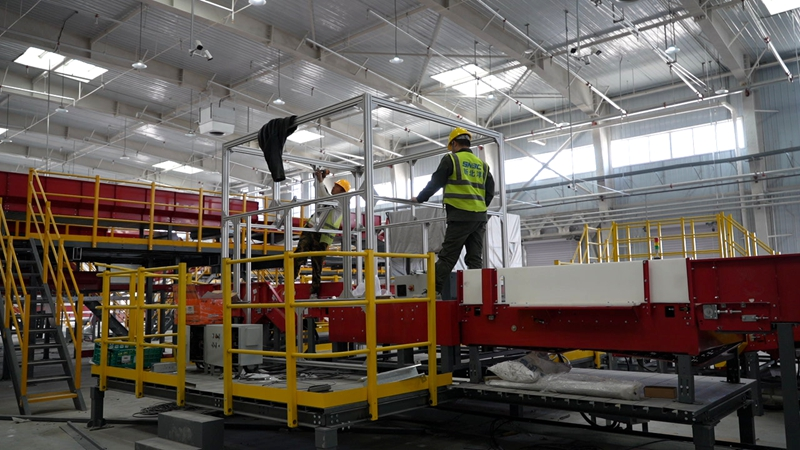 工人們?cè)?號(hào)倉庫內(nèi)正加緊開展設(shè)備安裝作業(yè) (艾海提 攝)