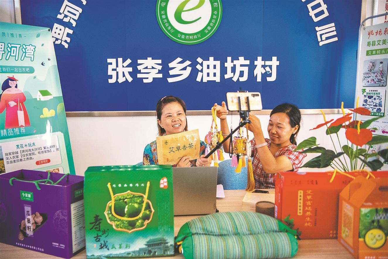 8月15日,村民在做特產(chǎn)直播。