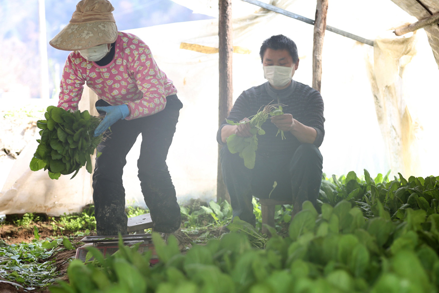 15日,湖北省十堰市張灣區(qū)花果街辦安溝村村民正在田間澆地培墑撒種、采收蔬菜。該村有集中連片土地250余畝,是城區(qū)鮮菜主要種植基地,為確保農(nóng)業(yè)生產(chǎn)和城市供應(yīng),該村以疫情防控為底線,采取統(tǒng)購農(nóng)資、分散錯時等辦法有序開展春播生產(chǎn),確保將疫情損失降至最低。