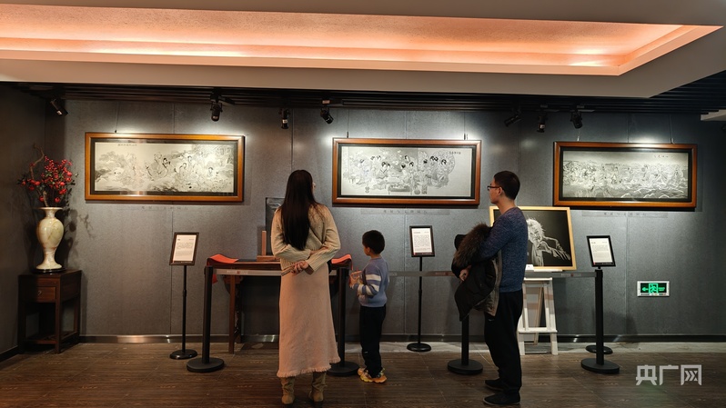 “這就是‘影雕’,人們也常說這是在石頭上‘刺繡’。”李雅華停下手,向記者解釋道。這門獨特的技藝,源于300多年前,融合了石雕的剛健與繪畫的韻致!八鼪]有筆畫線條,全憑匠人手腕力道的變化,以點成線,以線鋪面,通過無數個疏密深淺各異的微小鑿點,在堅硬的石板上營造出如水墨渲染般的光影層次和立體形象!闭f話間,她手中的鋼針再次落下,在黑色石板上鑿出千萬微點,不一會兒,一匹駿馬逐漸躍然石上,鬃毛飛揚、筋骨強健,引得眾人連連驚嘆。