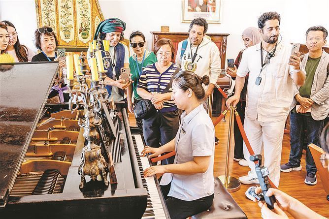 采風(fēng)團(tuán)走進(jìn)鋼琴博物館。