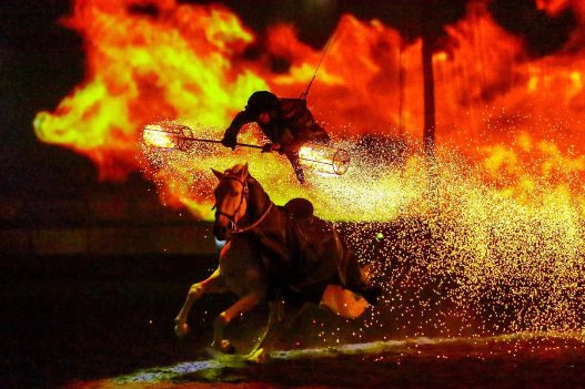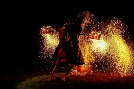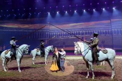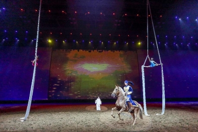 法國馬里奧團隊的“火焰騎士”、“飛馬”和“皮埃羅夢境”表演展現(xiàn)的就是集馬戲、舞蹈、雜技為一體的舞臺劇場秀。這些節(jié)目由國際著名舞馬大師馬里奧·盧拉斯基先生親自指導,由青島德瑞馬秀從法國引進的。其中,采用真實火焰的騎士表演帶來震撼的視覺觀感,西班牙的高級騎手乘著白色駿馬演繹一幕幕夢幻地畫面,綢吊演出,將高空雜技與地面騎術(shù)相結(jié)合,共同演繹皮埃羅夢境中的一段上世紀歐洲舞蹈。