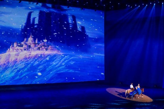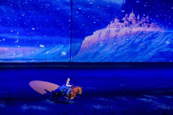 美國科羅拉多州的西部馬術(shù)雷寧“天才騎手”莎瑞·施瓦岑貝格受TOUCH國際馬術(shù)學院和主辦方的邀請用高超的騎乘技巧,唯美演繹了迪士尼著名動畫電影《冰雪奇緣》,將雷寧的奔放、自由在馳騁中展現(xiàn)得淋漓盡致,伴隨著耳熟能詳?shù)谋尘耙魳罚^眾得以享受這場美妙的視聽盛宴。