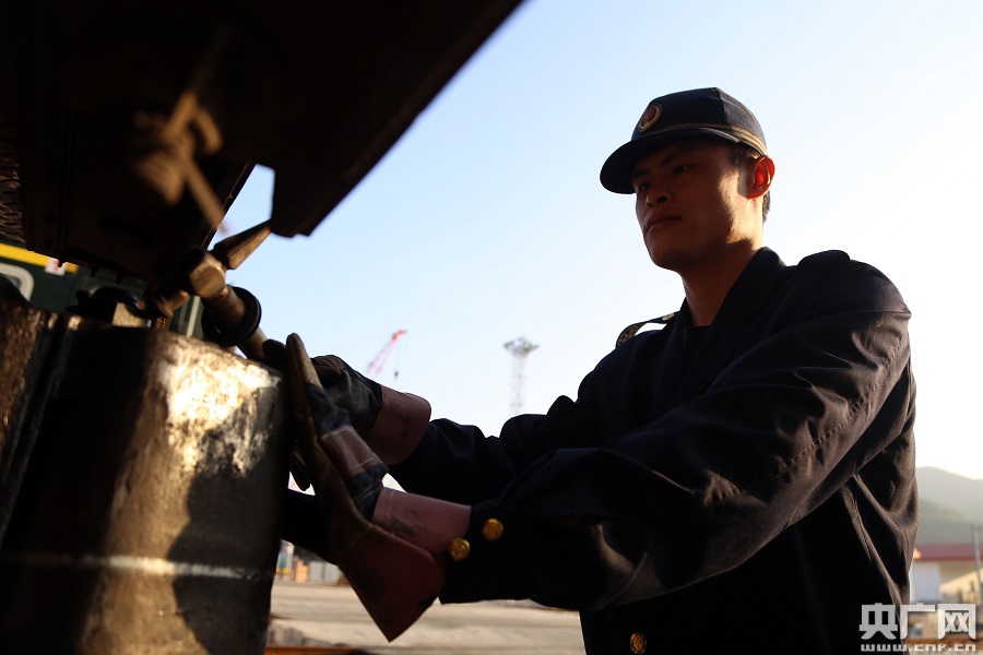 “車輛醫(yī)生”完成列車檢查作業(yè)后加裝鏈堵(央廣網(wǎng)發(fā) 王玉星 攝)
