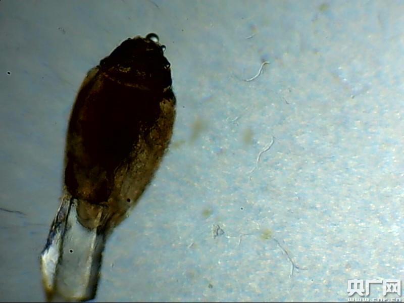 從小女孩眼部取下的陰虱(央廣網(wǎng)發(fā) 通訊員供圖)