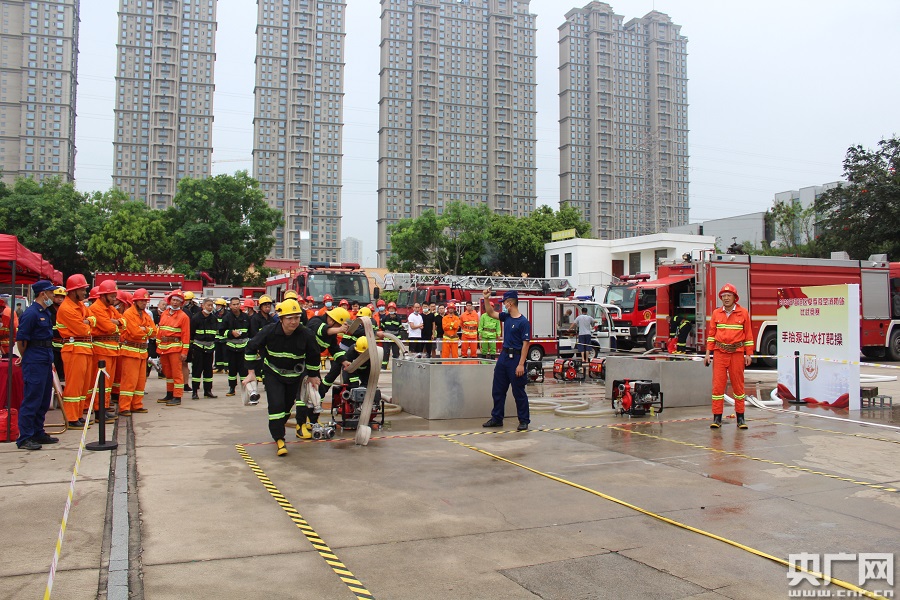 為了避免人員聚集,此次競(jìng)賽分南北兩個(gè)場(chǎng)區(qū)同時(shí)進(jìn)行,設(shè)置了原地著戰(zhàn)斗服、一人兩盤水帶連接操、手抬泵出水打靶操等三個(gè)項(xiàng)目,各項(xiàng)目都是對(duì)微型消防戰(zhàn)隊(duì)員的體能和實(shí)戰(zhàn)技能的綜合考驗(yàn),從各個(gè)層次全面考察隊(duì)員的體能和協(xié)同配合能力。
