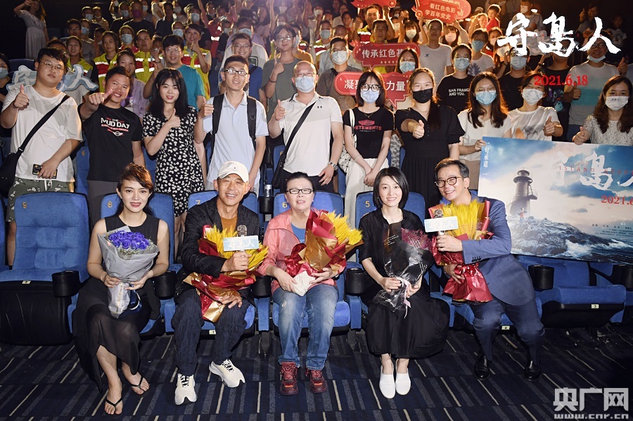 電影《守島人》主創(chuàng)團隊與廈門觀眾合影(央廣網(wǎng)發(fā) 出品方供圖)