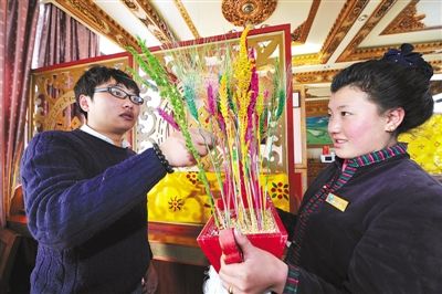 春節(jié)、藏歷新年期間,我區(qū)旅游市場(chǎng)持續(xù)升溫,大批游客進(jìn)藏過年,游客們?cè)陬I(lǐng)略西藏獨(dú)特自然風(fēng)光的同時(shí),還感受了藏歷新年的節(jié)日氛圍。圖為來自河南的游客(左)在拉薩感受藏族傳統(tǒng)儀式吃“切瑪”。本報(bào)記者 旦增西旦 攝