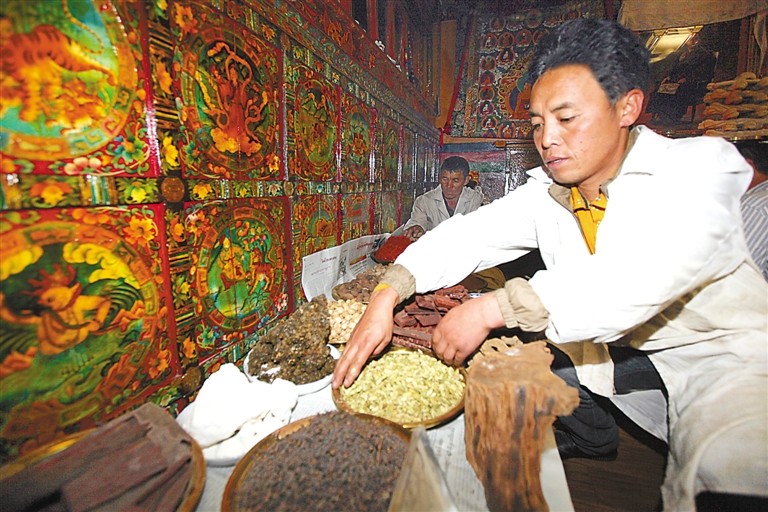 藏香具有悠久的歷史。藏香采用純天然、無污染的青藏高原特有的30余種藏草藥制成,而且還具有殺滅細(xì)菌、預(yù)防感冒、增強(qiáng)睡眠等獨(dú)特的功效。藏香對(duì)原料和制作工序要求也極為苛刻,包括選料、磨料、配料、攪拌、揉和、加工、晾曬、包裝等,全部由人工完成。