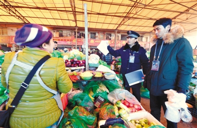 近日,拉薩市鞏固“禁白”成果領(lǐng)導(dǎo)小組辦公室的工作人員在農(nóng)貿(mào)市場巡查“禁白”工作情況。