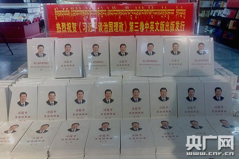 《習(xí)近平談治國理政》第三卷中英文版在拉薩發(fā)行(央廣網(wǎng)記者 羅布次仁 攝)