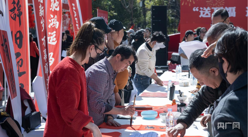 活動(dòng)現(xiàn)場(chǎng),紅紙鋪展、翰墨飄香。書(shū)法家以多種書(shū)體書(shū)寫(xiě)“!弊趾痛郝(lián),“四海同春”“時(shí)和歲好”“新歲平安”等詞躍然紙上,為群眾送上新春祝福;顒(dòng)還設(shè)置了非遺體驗(yàn)、新春游園等互動(dòng)環(huán)節(jié),讓群眾在參與中感受傳統(tǒng)文化魅力。多位市民表示,在家門口就能參與書(shū)法送福和文化體驗(yàn)活動(dòng),氛圍熱鬧,年味十足。