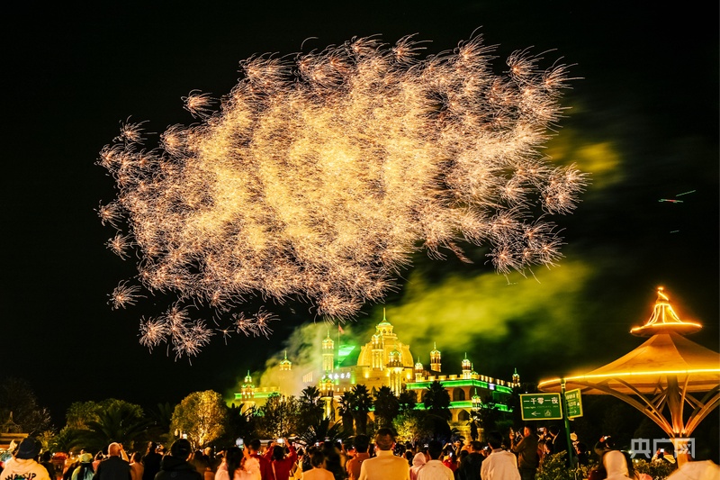 夜幕下,游客們觀賞煙火表演(央廣網(wǎng)記者 趙貝貝 攝)