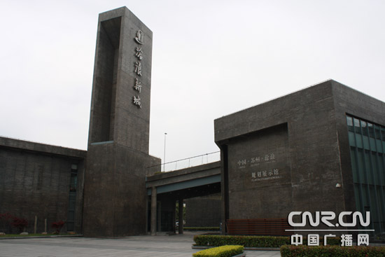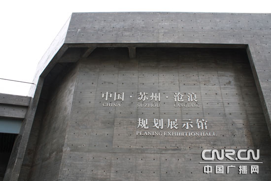 規(guī)劃展示館是一幢由八萬個螺栓孔組合而成的清水混凝土建筑。(中廣網(wǎng)記者李玲燕 攝)